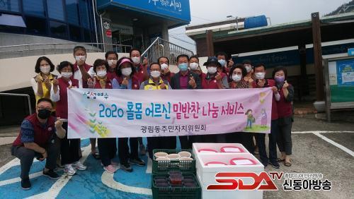 2020³â ÁÖ¹ÎÁÖµµÇü ±¤¸²µ¿ ÁÖ¹ÎÀÚÄ¡À§¿øÈ¸ ƯȻç¾÷ÀÇ ÀÏȯÀ¸·Î ÃßÁøµÇ°í ÀÖ´Â ¹Ø¹ÝÂù ³ª´® »ç¾÷Àº Äڷγª19À¸·Î ±Þ½Ä ºÀ»ç µîÀÌ ÁßÁöµÈ »óȲ¿¡¼ °í·ÉÀÇ ¾î¸£½Åµé¿¡°Ô µû¶æÇÑ ¿ÂÁ¤À» Àü´ÞÇϰí ÀÖ´Ù. ¹Ø¹ÝÂù ³ª´® Çà»ç´Â ÁÖ 1ȸ¾¿ ÃÑ 8ȸ¿¡ °ÉÃÄ ÀÌ´Þ ¸»±îÁö À̾îÁú ¿¹Á¤ÀÌ´Ù.