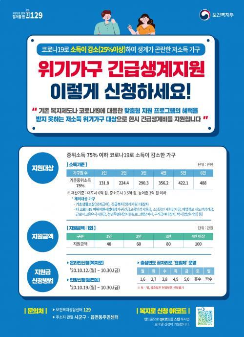 Áö¿ø±Ý ½ÅûÀº ¿Â¶óÀÎ(º¹Áö·Î www.bokjiro.go.kr)À¸·Î 12ÀϺÎÅÍ 30ÀϱîÁö ¼¼´ëÁÖ¸¸ ½ÅûÀÌ °¡´ÉÇϰí, À¾¸é ÇàÁ¤º¹Áö¼¾ÅÍ ÇöÀ广¹® ½ÅûÀº ¿À´Â 19ÀϺÎÅÍ 30ÀϱîÁö ¼¼´ëÁÖ¿Í ¼¼´ë¿ø, ¹ýÁ¤´ë¸®ÀÎÀÌ ½Åû °¡´ÉÇÏ´Ù.