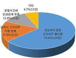 º¸Çè°¡ÀÔÀÚÀÇ °íÁöÀǹ« °ü·Ã ÇÇÇØ±¸Á¦ ½Åû 195°ÇÀ» ºÐ¼®ÇÑ °á°ú, ¡®¼ÒºñÀÚÀÇ ÀǵµÇÏÁö ¾ÊÀº °íÁöÀǹ« ºÒÀÌÇ࡯À¸·Î ÀÎÇÑ ÇÇÇØ°¡ 63.6%(124°Ç)·Î °¡Àå ¸¹¾Ò´Ù. ´ÙÀ½À¸·Î ¡®º¸Çè¼³°è»çÀÇ °íÁöÀǹ« ÀÌÇà ¹æÇØ¡¯ 17.9%(35°Ç), ¡®°íÁöÀǹ« ºÒÀÌÇàÀÌ º¸Çè»ç°í¿Í Àΰú°ü°è ºÎÁ·¡¯ 11.8%(23°Ç) µîÀÌ µÚ¸¦ À̾ú´Ù.
