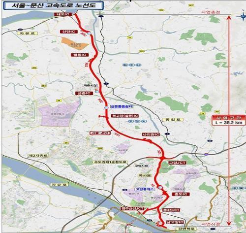 ¼¿ï~¹®»ê °í¼Óµµ·Î´Â °æ±â °í¾ç½Ã ´ö¾ç±¸ °¸Åµ¿¿¡¼ ÆÄÁֽà ¹®»êÀ¾ ³»Æ÷¸®¸¦ ¿¬°áÇÏ´Â ÃÑ ¿¬Àå 35.2km, ¿Õº¹ 4~6Â÷·Î µµ·Î·Î, Áö³ ¡¯15³â 11¿ù Âø°ø ÀÌÈÄ ÃÑ ÅõÀÚºñ ¾à 21,190¾ï ¿øÀ» ÅõÀÔÇÏ¿© 5³â ¸¸¿¡ °³ÅëÇÏ°Ô µÇ¾ú´Ù.