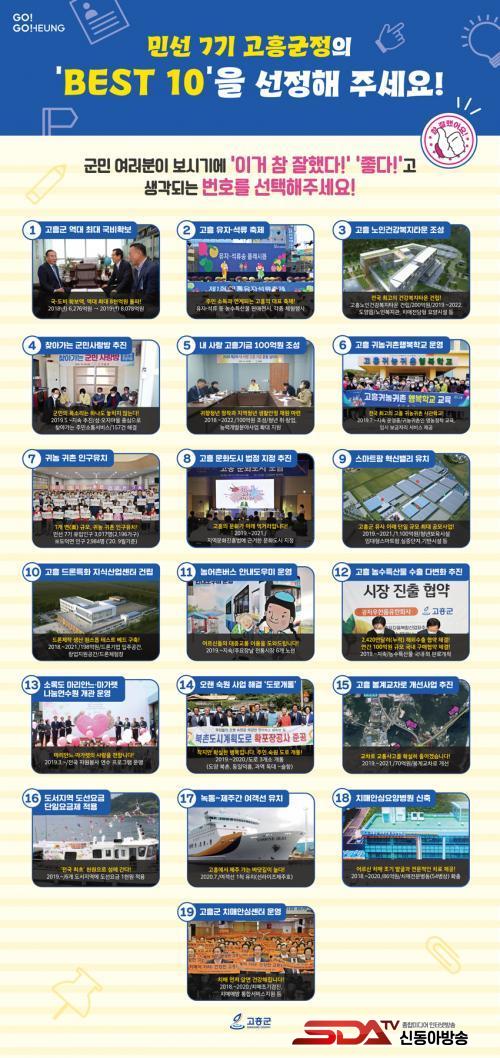 ¡®°íÈﱺÁ¤ BEST 10¡¯Àº ¹Î¼± 7±â Àü¹Ý±â µ¿¾È ÃßÁøÇÑ ¿ì¼ö ½ÃÃ¥À̳ª »ç¾÷ Áß¿¡¼ 10°ÇÀÌ ¼±Á¤µÇ´Âµ¥, °íÈïÀ» ºû³½ ´ëÇ¥ÀûÀÎ ¼º°ú¸¦ ±º¹Îµé°ú ÇÔ²² °øÀ¯Çϱâ À§ÇØ ¸¶·ÃµÆ´Ù.