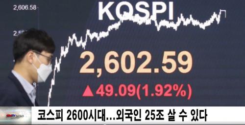ÀåÁß 2604.92¸¦ ÅÍÄ¡Çϸç ÀåÁß ¿ª´ë ÃÖ°íÄ¡(2607.1)¿¡µµ ±ÙÁ¢Çß´Ù.