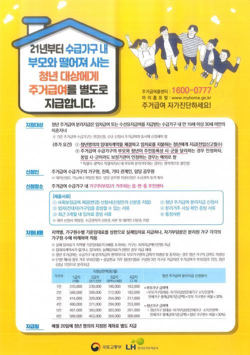 Áö¿ø´ë»óÀº Áְű޿© ¼ö±Þ °¡±¸ ³» ¸¸ 19¼¼ ÀÌ»ó 30¼¼ ¹Ì¸¸ ¹ÌÈ¥ÀÚ·Î ºÎ¸ð¿Í Áֹεî·Ï»ó ½Ã±ºÀ» ´Þ¸®Çϴ û³âÀÌ´Ù.