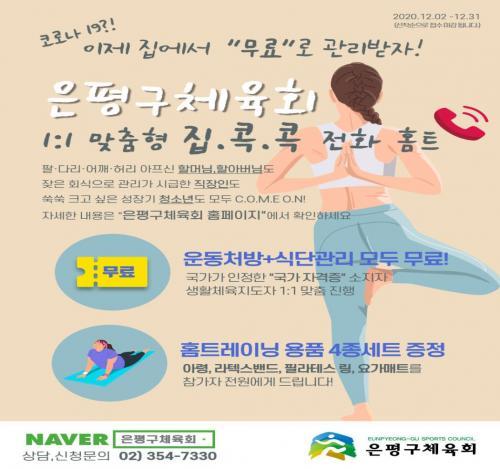 À̹ø ȨƮ·¹ÀÌ´× »ç¾÷Àº ÀºÆò±¸¹ÎÀÌ¸é ³²³à³ë¼Ò ´©±¸³ª Âü¿©ÇÒ ¼ö ÀÖÀ¸¸ç, ¹®È­Ã¼À° °ü±¤ºÎ¿¡¼­ ¹ßÇàÇÏ´Â »ýȰüÀ°Áöµµ»ç ÀÚ°ÝÁõÀ» ¼ÒÁöÇÑ ÀºÆò±¸Ã¼À°È¸ Á÷¿øÀÌ 1:1·Î ÁøÇàÇÏ´Â ¸ÂÃãÇü Æ®·¹ÀÌ´× ¹× ¿îµ¿Ã³¹æ°ú ½Ä´Ü °ü¸®¸¦ ¹ÞÀ» ¼ö ÀÖ´Ù.
