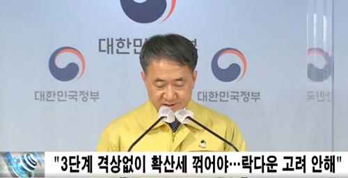 ¹Ú´ÉÈÄ Áß¾ÓÀç³¾ÈÀü´ëÃ¥º»ºÎ 1Â÷Àå(º¸°Çº¹ÁöºÎ Àå°ü)Àº 20ÀÏ Á¤·Ê ºê¸®Çο¡¼ "°Å¸®µÎ±â 3´Ü°è·ÎÀÇ »óÇâ ¾øÀÌ ÇöÀç ¼öÁØ¿¡¼ È®»ê¼¼¸¦ ²ªÀ» ¼ö ÀÖµµ·Ï Á¶±Ý¸¸ ´õ Àγ»ÇÏ°í µ¿ÂüÇØ´Þ¶ó"°í ¹àÇû´Ù.