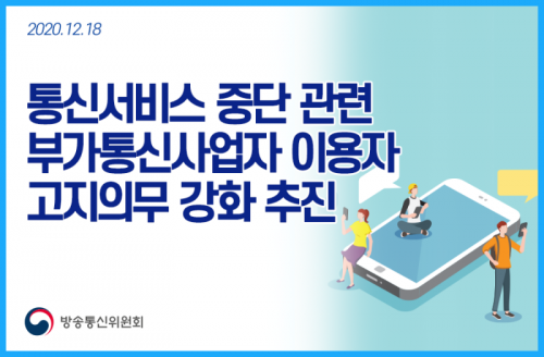 ¹æ¼ÛÅë½ÅÀ§¿øÈ¸´Â Áö³ 2018³â ÄÉÀÌÆ¼(KT) ¾ÆÇö±¹»ç ÈÀç ½Ã Åë½ÅÀå¾Ö ¹ß»ýÀ» °è±â·Î ¡¸Àü±âÅë½Å»ç¾÷¹ý¡¹ ¹× ¡¸Àü±âÅë½Å»ç¾÷¹ý ½ÃÇà·É¡¹Á¦37Á¶ÀÇ11(Àü±âÅë½Å¿ª¹« Á¦°ø Áß´Ü »ç½Ç µîÀÇ °íÁö)À» °³Á¤, Àü±âÅë½Å¿ª¹« Áß´Ü ½Ã ÀÌ¿ëÀÚ¿¡ ´ëÇÑ °íÁö¸¦ Àǹ«È(¡®19.6.25.) ÇÏ¿´´Ù.