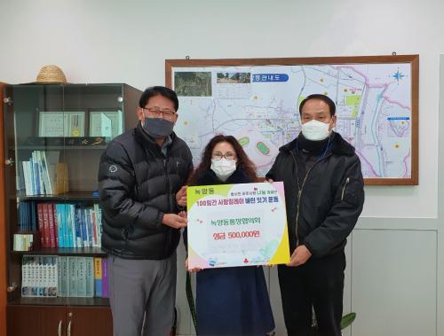 ³ì¾çµ¿ ÅëÀåÇùÀÇȸ(ȸÀå ¹ÚÇöȯ)´Â 12¿ù 17ÀÏ ÀÛÀº Á¤¼ºÀÌÁö¸¸ ¾î·Á¿î ÀÌ¿ôµéÀÌ¿¡°Ô Á¶±ÝÀÌ¶óµµ µµ¿òÀÌ µÇµµ·Ï ½á´Þ¶ó¸ç ȸ¿øµéÀÌ ¸¶À½À» ¸ð¾Æ ¼º±Ý 50¸¸¿øÀ» ±âºÎÇß°í, ³ì¾çµ¿ Áö¿ª»çȸº¸ÀåÇùÀÇü(À§¿øÀå ±èÃæ½Ä)´Â 12¿ù 22ÀÏ ¸¸µÎ¿Í ¶±±¹¶± µîÀ» ´ãÀº ÇØÇǹڽº 40»óÀÚ¸¦ ±âºÎÇß´Ù.