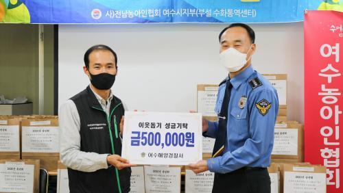 ¿©¼öÇØ°æÀº ¿À´Ã ¿ÀÈÄ 14:00 Àü³² ¿©¼ö½Ã¿¡ À§Ä¡ÇÑ ¡®¿©¼ö³ó¾Æ¿ø¡¯°ú ¡®¿©¼ö ¼ö¾îÅ뿪¼¾ÅÍ¡¯¸¦ °¢°¢ ¹æ¹®ÇØ À§¹®±ÝÀ» Àü´ÞÇß´Ù.