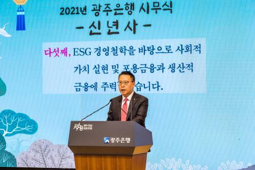 ¼ÛÁ¾¿í ÀºÇàÀåÀº ½Å³â»ç¿¡¼ ¡°2020³âÀº ¡®Äڷγª19¡¯ ¿©ÆÄ·Î ¾î´À ¶§º¸´Ù ±ä ÇÑÇØ¸¦ º¸³»¸ç Áö¿ª¿¡ ´ÚÄ£ À§±â¸¦ Áö¿ª¹Î°ú ÇÔ²² À̰ܳ»°í Áö¿ª »ó»ý¹ßÀüÀ» ÀÌ·ï³»°íÀÚ Àü ÀÓÁ÷¿øÀÌ °í±ººÐÅõÇØ ¿Â ÇÑÇØ¿´´Ù¡±¸ç ¡°2021³âÀº ´õ¿í °¡¼Óȵǰí ÀÖ´Â ¡®Äڷγª19¡¯ À§±â¿Í µðÁöÅÐ ±ÝÀ¶»ê¾÷ÀÇ Ä¡¿ÇÑ °æÀï¿¡ ¸Â¼ º¯È¿Í Çõ½ÅÀ» °ú°¨È÷ ½ÇÇàÇØ ³ª°¥ °ÍÀ̸ç, °í°´°¡Ä¡¿Í »çȸÀû Ã¥ÀÓÀ» ±âº»À¸·Î ¿ì¼öÇÑ °æ¿µ¼º°ú¸¦ °ÅµÑ ¼ö ÀÖµµ·Ï ÃÖ¼±À» ´ÙÇÏÀÚ¡±°í ¸»Çß´Ù.
