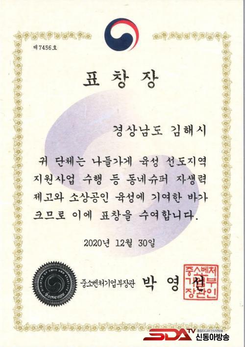 [½Åµ¿¾Æ¹æ¼Û=¼ÛÇöÁÖ ±âÀÚ] ±èÇØ½Ã´Â 2020³â Áß¼Ò½´ÆÛ Áö¿ø»ç¾÷ Æò°¡¿¡¼­ ¿ì¼ö±â°ü¿¡ ¼±Á¤µÅ Áß¼Òº¥Ã³±â¾÷ºÎÀå°ü ǥâÀ» ¼ö»óÇß´Ù°í ¹àÇû´Ù.