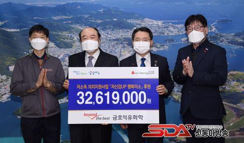 ±ÝÈ£¼®À¯ÈÇÐ ¼Û¼®±Ù ºÎ»çÀåÀÌ 19ÀÏ ¿©¼ö½Ãû ½ÃÀå½ÇÀ» ¹æ¹®ÇØ Á÷¿øµéÀÌ ±Þ¿©ÀÇ ÀÏÁ¤±Ý¾×À» ½Ê½ÃÀÏ¹Ý ¸ðÀ¸°í ȸ»ç°¡ 1:1·Î ¸ÅĪÇÑ ¸ð±Ý¾× 32,619õ ¿øÀ» ±Ç¿ÀºÀ ¿©¼ö½ÃÀå¿¡°Ô Àü´ÞÇß´Ù.