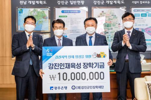 À̹ø Àü´Þ½ÄÀ» ÅëÇØ ±¤ÁÖÀºÇàÀº 1000¸¸¿øÀÇ ÀåÇбÝÀ» Àü´ÞÇßÀ¸¸ç, ÀÌ´Â °Áø±º ±³À° ¹ßÀü ¹× Áö¿ªÀÎÀç ¾ç¼ºÀ» À§ÇØ ¾²¿©Áú ¿¹Á¤ÀÌ´Ù.