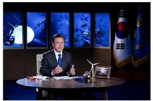 »çÁø=¹®ÀçÀÎ ´ëÅë·ÉÀÌ 27ÀÏ ¿ÀÈÄ Ã»¿Í´ë¿¡¼­ È­»óÀ¸·Î ¿­¸° 2021 ¼¼°è°æÁ¦Æ÷·³(WEF) Çѱ¹Á¤»ó Ưº°¿¬¼³¿¡ Âü¼®, ¿¬¼³Çϰí ÀÖ´Ù. (»çÁøÃâó=û¿Í´ë)
