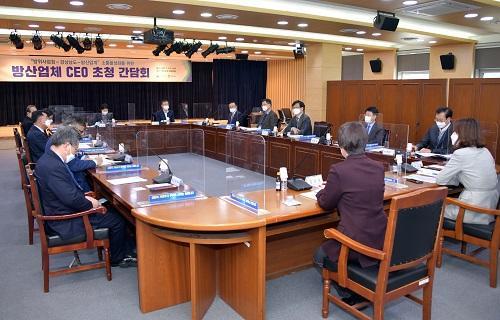 °£´ãȸ´Â Äڷγª19 Àå±âÈ¿¡ µû¸¥ °æ±âÇ϶ôÀ¸·Î ¹æ»ê±â¾÷ ¹× Çù·Â¾÷üµéÀÇ ¾î·Á¿òÀÌ Çö½Çȵʿ¡ µû¶ó »ý»ýÇÑ ÇöÀåÀÇ ¸ñ¼Ò¸®¸¦ Á÷Á¢ µè±â À§ÇØ ¸¶·ÃµÇ¾ú´Ù. ¹æÀ§»ê¾÷ Àü¹Ý¿¡ ´ëÇÑ ±â¾÷ÀÇ Çö¾È°ú ¾î·Á¿ò¿¡ ´ëÇØ ±â¾÷°ú ÀÏ´ëÀÏ·Î ÀÚÀ¯·Ó°Ô ÀǰßÀ» ±³È¯Çß´Ù.