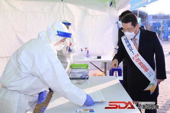 »çÁø=±Ç¿ÀºÀ ¿©¼ö½ÃÀåÀÌ 10ÀÏ ¿©¼ö¿¢½ºÆ÷¿ª¿¡ ¼³Ä¡µÈ Àӽà ¼±º°Áø·á¼Ò¸¦ ã¾Æ Äڷγª19 Áø´Ü°Ë»ç¸¦ ÇÏ´Â Á÷¿øµéÀ» °Ý·ÁÇϸç, °Ë»ç ÀýÂ÷ µîÀ» Á¡°ËÇϰí ÀÖ´Ù.
