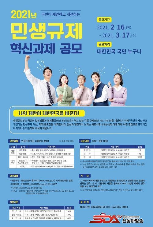¹Î»ý±ÔÁ¦ °ø¸ðÀüÀº ±¹¹ÎÀÇ ÀÏ»ó»ýȰ°ú °æÁ¦È°µ¿(Ãë¾÷, â¾÷)¿¡¼ °Þ´Â °¢Á¾ ±ÔÁ¦(¹ý·É, Á¦µµ, ±ÔÁ¤ µî)¸¦ °³¼±Çϱâ À§ÇØ ±¹¹ÎÀÌ Á÷Á¢ ±ÔÁ¦ °³¼± ¾ÆÀ̵ð¾î¸¦ Á¦ÃâÇÏ´Â °ø¸ðÀüÀÌ´Ù.