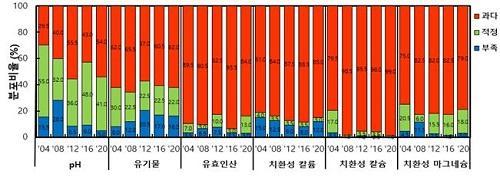 µµ ³ó¾÷±â¼ú¿øÀº 2004³âºÎÅÍ 4³â ÁÖ±â·Î ½Ã¼³Àç¹èÁö Åä¾çÀÇ µ¿ÀÏÇÑ 200°³¼Ò ÁöÁ¡ÀÇ Åä¾ç ºñ¿Áµµ, ph µî È­Çмº º¯µ¿Á¶»ç¸¦ ½Ç½ÃÇϰí ÀÖ´Ù.