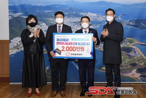 ÇÑȼַç¼Ç(ÁÖ) ¾ÈÀμö Àü¹«´Â Áö³ 24ÀÏ ¿©¼ö½ÃûÀ» ã¾Æ ÀÓÁ÷¿øµéÀÌ Àç³Áö¿ø±Ý ¼ö·É¾× Áß ÀϺθ¦ ¸ð±ÝÇØ ¸¶·ÃÇÑ 2õ¸¸ ¿øÀÇ ±âºÎÁõ¼¸¦ ¡®ÇູÇÑ ³ª´®³ÃÀå°í¡¯ »ç¾÷À» À§ÇØ ½á´Þ¶ó¸ç ±Ç¿ÀºÀ ¿©¼ö½ÃÀå¿¡°Ô Àü´ÞÇß´Ù.