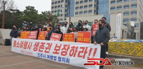 [½Åµ¿¾Æ¹æ¼Û=Ç㳪¿µ ±âÀÚ] ÁøÁֽà ¿©Çà¾÷ ÇùÀÇȸ´Â 24ÀÏ 11½Ã ÁøÁÖ½Ãû ¾Õ¿¡¼­ ¡°¡®Áß¼Ò¿©Çà»ç »ýÁ¸±Ç º¸ÀåÇÏ¶ó¡¯ ¿©Çà¾÷°è Á¾»çÀÚµéÀÇ Àý±Ô¸¦ ´ã¾Æ »ýÁ¸±Ç º¸Àå Ã˱¸ ±âÀÚȸ°ßÀ» ¿­¾ú´Ù.