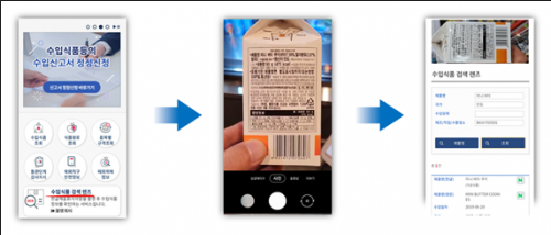 ¡®¼öÀÔ½Äǰ °Ë»ö ·»Á´Â ÈÞ´ëÆùÀ¸·Î ³×À̹ö °Ë»ö(¡®¼öÀÔ½ÄǰÁ¤º¸¸¶·ç¡¯)À» ÅëÇØ ¼öÀÔ½ÄǰÁ¤º¸¸¶·ç¿¡ Á¢¼ÓÇϸé óÀ½È¸é Áß°£¿¡ ¹öư ¹èÄ¡ÇÏ¸ç ¡®¼öÀÔ½Äǰ °Ë»ö ·»Á´Â À̹ÌÁö Àνıâ¼úÀ» Ȱ¿ëÇØ Á¦Ç°ÀÇ ÇѱÛÇ¥½Ã»çÇ׸¸ °¡Áö°íµµ ¼öÀÔÀ̷°ú ȸ¼ö¿©ºÎ¸¦ ¼Õ½±°Ô È®ÀÎÇÒ ¼ö ÀÖ´Â ±â¼úÀ» °³¹ßÇϱâ À§ÇÑ ½Ã¹ü ¼ºñ½º·Î ¼ÒºñÀÚ°¡ ¼öÀÔ½ÄǰÁ¤º¸¸¶·ç ȨÆäÀÌÁöÀÇ ¡®¼öÀÔ½Äǰ °Ë»ö ·»Á¿¡ Á¢¼ÓÇϸé Á¦Ç° Æ÷ÀåÁöÀÇ ÇÑ±Û Ç¥½Ã»çÇ×À» ÃÔ¿µÇÒ ¼ö ÀÖ´Â ·»Áî°¡ ÀÛµ¿µÇ°í, »çÁø ÃÔ¿µ ÈÄ ±¤Çй®ÀÚÀνļºñ½º(OCR)* ¸¦ ÅëÇØ Á¦Ç°¸í, Á¦Á¶È¸»ç¸í µî ¹®ÀÚ¸¦ ÀÚµ¿ ÃßÃâÇÏ¿© ÇØ´ç Á¦Ç°°ú °ü·ÃÇÑ ¾ÈÀüÁ¤º¸¸¦ Ç¥½ÃÇÑ´Ù.