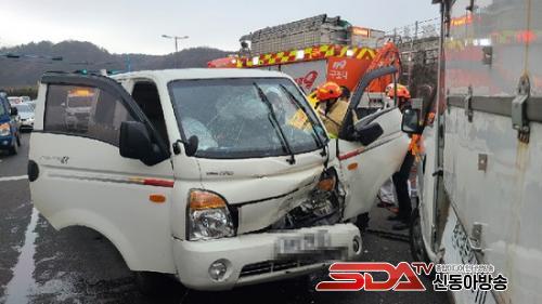 ÁøÁÖ¼Ò¹æ¼ 119±¸Á¶´ë°¡ µµÂøÇßÀ» ¶§ µµ·Î¿¡ Æ÷ÅÍ Æ®·°(1Åæ) 2´ë°¡ ¼·Î Ãæµ¹ÇØ Â÷·®ÀÇ ¿îÀü¼® ÁÂÃøºÎ ÆÄ¼ÕÀ¸·Î ÀÎÇÑ ¿îÀüÀÚÀÇ ÇϹݽÅÀÌ ³¢¿© ÀÖ´Â À§±ÞÇÑ »óȲÀ̾ú°í ±¸Á¶´ë´Â ¿îÀü¼® ¹®À» °Á¦·Î °³¹æÇÏ¿© À¯¾Ð Àü°³±â·Î ¿îÀü¼®ÀÇ °ø°£À» È®º¸ÇÑ ÈÄ ¿îÀüÀÚ(ȯÀÚ)¸¦ º´¿øÀ¸·Î À̼ÛÇß½À´Ï´Ù.