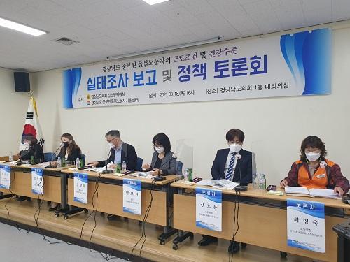 [½Åµ¿¾Æ¹æ¼Û=À±Çý¸² ±âÀÚ] °æ»ó³²µµÁߺαǵ¹º½³ëµ¿ÀÚÁö¿ø¼¾ÅÍ¿Í °æ»ó³²µµÀÇȸ ±è°æ¿µ ÀÇ¿øÀÌ °øµ¿ÁÖÃÖÇÏ´Â ¡®2020³â µ¹º½³ëµ¿ÀÚ ±Ù·ÎÁ¶°Ç ¹× °Ç°­¼öÁØ ½ÇÅÂÁ¶»ç °á°ú º¸°í ¹× Á¤Ã¥ Åä·Ðȸ¡¯°¡ 3¿ù 18ÀÏ ¿ÀÈÄ, °æ»ó³²µµÀÇȸ 1Ãþ ´ëȸÀǽǿ¡¼­ ¿­·È´Ù.