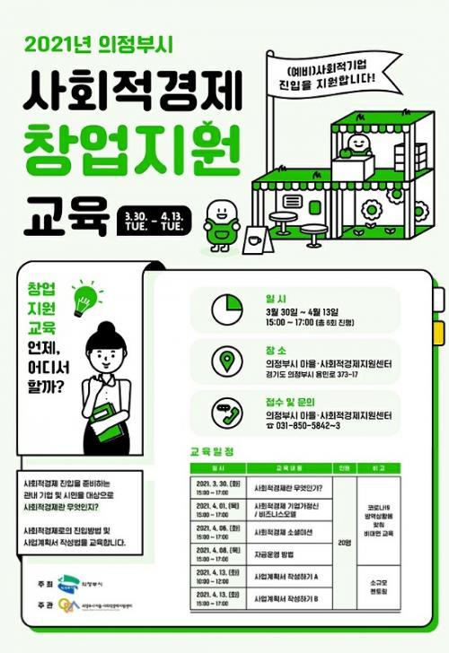 3¿ù 30ÀÏ ¡®»çȸÀû°æÁ¦¶õ ¹«¾ùÀΰ¡?¡¯¸¦ ½ÃÀÛÀ¸·Î »çȸÀû°æÁ¦ ±â¾÷°¡Á¤½Å°ú ¼Ò¼È¹Ì¼Ç, »çȸÀû±â¾÷¿¡ ¸Â´Â »ç¾÷°èȹ¼­ ÀÛ¼º ¹× Àڱݰèȹ ¼ö¸³±îÁö ÃÑ 6ȸ¿¡ °ÉÃÄ ÁøÇàµÈ´Ù. À̹ø ±³À°¼ö·áÀÚµéÀº ÀÇÁ¤ºÎÇü »çȸÀû°æÁ¦ â¾÷Áö¿ø °ø¸ð»ç¾÷ ½Åû ½Ã °¡Á¡À» ºÎ¿©ÇÒ ¿¹Á¤ÀÌ´Ù.