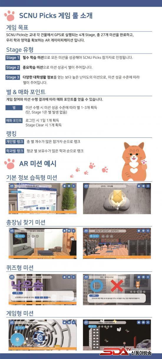 ¡®SCNU Picks¡¯´Â ¼øÃµ´ë ½ÅÀÔ»ýÀÌ ÀÔÇÐÇÏ¿© Á¹¾÷Çϱâ±îÁö ¹Ýµå½Ã ¾Ë¾Æ¾ß ÇÏ´Â Á¤º¸ ¹× À¯¿ëÇÑ ÄÜÅÙÃ÷¸¦ 27°³ÀÇ AR/VR ¹Ì¼ÇÀ¸·Î °ÔÀÓÈ(gamification)ÇÑ °ÍÀ¸·Î, ÀçÇлýÀÇ ¼º°øÀûÀÎ Çб³»ýȰ ÀûÀÀÀ» À§ÇØ Áö³ 2019³â ´ëÇÐÇõ½ÅÁö¿ø»ç¾÷ÀÇ ÀÏȯÀ¸·Î °³¹ßµÇ¾î ¿ÃÇØ µÎ ¹øÂ° °³½ÃÇÏ´Â °ÍÀÌ´Ù.