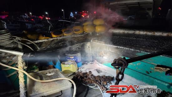 Áö³ 9ÀÏ ¿ÀÈÄ 10½Ã 46ºÐ²² ¿©¼ö½Ã Ⱦç¸é ¿ëÁÖ¸® È£µÎ¼±ÂøÀå¿¡¼ Á¤¹ÚÁßÀÎ 23Åæ±Þ ¾îȹ¹°¿î¹Ý¼± AÈ£(¿©¼ö¼±Àû, FRP)¿¡¼ ÈÀç°¡ ¹ß»ýÇϱ⠽ÃÀÛÇÏ¿´´Ù.