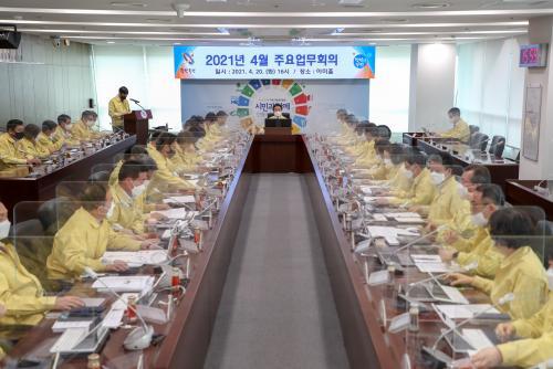 ¸¶Áö¸·À¸·Î ±è ½ÃÀåÀº ¡°Äڷγª19 ¹æ¿ª ´ëÀÀ ¹× 75¼¼ ÀÌ»ó ¾î¸£½Å ¹é½ÅÁ¢Á¾ µî ½Ã±ÞÇÑ Çö¾ÈÀÌ ¸¹¾ÒÀ½¿¡µµ ÇàÁ¤ °ø¹éÀÌ »ý±âÁö ¾Êµµ·Ï ºÎ½ÃÀå ÀÌÇÏ °øÁ÷ÀÚ, ƯÈ÷ ´ç¸é¾÷¹«¿Í ÇÔ²² ¹æ¿ª´ëÀÀ, Á¾±³½Ã¼³ Á¡°Ë, ¿ªÇÐ Á¶»ç µî ºÒöÁÖ¾ß ³ë·ÂÇØÁØ ¸ðµç Á÷¿øµéÀÌ Àß Ã¬°ÜÁØ ºÎºÐ¿¡ ´ëÇØ °¨»çÇÏ´Ù¡±¸ç ȸÀǸ¦ ¸¶¹«¸®Çß´Ù.
