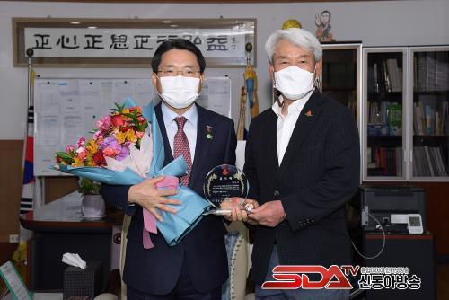 »çÁø=¿©¼ö½Ã°¡ 2020³â ¿¬Á߸ð±Ý ¹× Èñ¸Á2021³ª´® Ä·ÆäÀÎ ¿ì¼ö ½Ã‧±ºÀ¸·Î ¼±Á¤µÇ¾î Áö³­ 7ÀÏ ¿©¼ö½Ãû ½ÃÀå½Ç¿¡¼­ ±Ç¿ÀºÀ ¿©¼ö½ÃÀåÀÌ Àü³²»çȸº¹Áö°øµ¿¸ð±Ýȸ ³ëµ¿ÀÏ È¸ÀåÀ¸·ÎºÎÅÍ °¨»çÆÐ¸¦ ¹Þ°í ÀÖ´Ù.