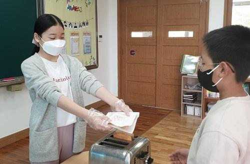 ¡®¾ÆÄ§¹ä ¸Ô±â ¿îµ¿¡¯¿¡ Âü¿©ÇÑ ÇлýµéÀº ¡°Æò¼Ò¿¡ ¾ÆÄ§À» ¾È ¸Ô°í ¿Ã ¶§°¡ ¸¹¾Ò´Âµ¥ Çб³¿¡¼­ ¾ÆÄ§À» ¸ÔÀ» ¼ö ÀÖ¾î ÁÁ¾Ò´Ù. ¾ÆÄ§À» ¾È ¸Ô°í ¿Â ³¯Àº ¹è°¡ °íÆÄ¼­ Á¡½ÉÀ» ¸¹ÀÌ ¸Ô°Ô µÇ´Âµ¥ Çб³¿¡¼­ ¾ÆÄ§¹äÀ» ¸ÔÀ¸´Ï±î Á¡½É¶§ °ú½ÄÇÏÁö ¾Ê°Ô ‰Ñ´Ù¡±´Â µîÀÇ ¼Ò°¨À» ¹àÇû´Ù.