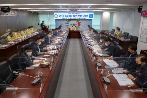 À̳¯ °£´ãȸ¿¡¼´Â ÇöÀç ½Ã¿¡¼ ÃßÁøµÇ°í ÀÖ´Â °¢ ±â°üº° ´ëÇü°Ç¼³°ø»ç »ç¾÷ÃßÁøÇöȲÀ» Á¡°ËÇÏ°í °ü°èÀÚµéÀ» °Ý·ÁÇÏ´Â ½Ã°£À» °¡Á³´Ù.