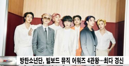 [½Åµ¿¾Æ¹æ¼Û´º½º=±Ç¹Î¾Æ ±âÀÚ] ±×·ì ¹æÅº¼Ò³â´Ü(BTS)ÀÌ ¹Ì±¹ 3´ë À½¾Ç½Ã»ó½Ä Áß ÇϳªÀÎ 'ºôº¸µå ¹ÂÁ÷ ¾î¿öÁî'(BBMA)¿¡¼­ 4°ü¿Õ¿¡ ¿À¸£¸ç ÀÚü ÃÖ´Ù ¼ö»ó ±â·ÏÀ» °æ½ÅÇß´Ù.
