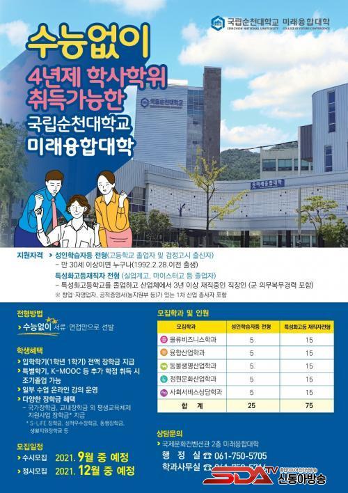 ¼øÃµ´ë ¹Ì·¡À¶ÇÕ´ëÇÐÀº Áö¿ª ¼ºÀÎÇнÀÀÚ¸¦ À§ÇÑ Á¤±Ô ÇлçÇÐÀ§ Ãëµæ°úÁ¤À¸·Î ¹°·ùºñÁî´Ï½ºÇаú, À¶ÇÕ»ê¾÷Çаú, µ¿¹°»ý¸í»ê¾÷Çаú, Á¤¿ø¹®È»ê¾÷Çаú, »çȸ¼ºñ½º»ó´ãÇаú µî 5°³ Çаú¸¦ ¿î¿µÇϰí ÀÖÀ¸¸ç, ¸¸ 30¼¼ ÀÌ»ó °íµîÇб³ Á¹¾÷ÀÚ ¶Ç´Â Ư¼ºÈ°í(½Ç¾÷°è°í)¸¦ Á¹¾÷Çϰí 3³â ÀÌ»ó ÀçÁ÷Çϰí ÀÖ´Â »ç¶÷À» ´ë»óÀ¸·Î ¼ö´É½ÃÇè ¾øÀÌ ¼·ù ¹× ¸éÁ¢À» ÅëÇØ ½ÅÀÔ»ýÀ» ¼±¹ßÇϰí ÀÖ´Ù.