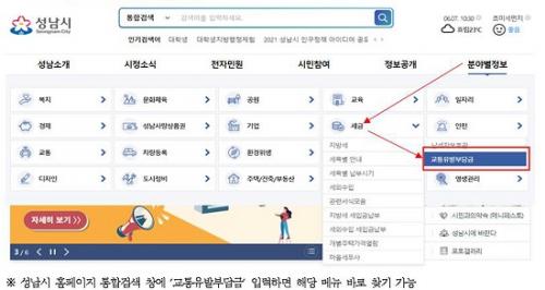 »çÁø=¼º³²½Ã Àü±¹ ù ±³ÅëÀ¯¹ßºÎ´ã±Ý ¿Â¶óÀÎ Á¶È¸ ⱸ °³¼³ (¼º³²½Ã ȨÆäÀÌÁö ±³ÅëÀ¯¹ßºÎ´ã±Ý ¸Þ´º È­¸é ĸó)