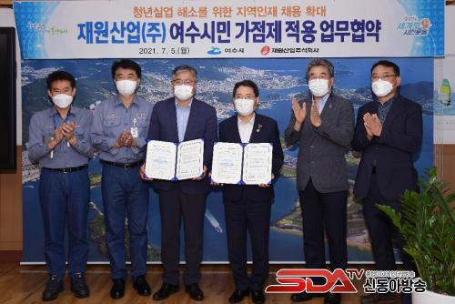 ¡ã 5ÀÏ ¿ÀÀü ¿©¼ö½Ãû ½ÃÀå½Ç¿¡¼­ ±Ç¿ÀºÀ ¿©¼ö½ÃÀå°ú ½É¼º¿ø Àç¿ø»ê¾÷(ÁÖ)´ëÇ¥ÀÌ»ç´Â ¡®Àç¿ø»ê¾÷(ÁÖ) ÀηÂä¿ë ¿©¼ö½Ã¹Î°¡Á¡Á¦ Àû¿ë Çù¾à¼­¡¯¿¡ ¼­¸íÇÏ¸ç ¾ç ±â°üÀÇ »ó»ý¹ßÀü°ú ¿©¼öÁö¿ª û³â½Ç¾÷ ÇØ¼Ò, Àα¸ Áõ°¡¿¡ Àû±Ø Çù·ÂÇÒ °ÍÀ» ¾à¼ÓÇß´Ù