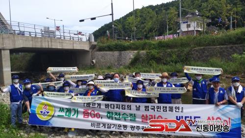 ±¤ÁÖ±¤¿ª½ÃÇùÀÇȸ´Â ¹Ù´Ù¿Í Á÷Á¢ Á¢ÇÏÁö ¾Ê´Â ¿ì¸®Áö¿ªÀÇ Æ¯¼º»ó ±¤ÁÖõÀÇ »ýŰ踦 º¸Á¸ÇÏ°í ¹Ù´Ù·Î À¯ÀԵǴ °¢Á¾ ¿À¿°¿øÀ» Â÷´ÜÇϱâ À§ÇØ Áö¿ª³» ÇÏõ Á¤ÈȰµ¿À» ÆîÄ¡±â·Î Çϰí ù ¹øÂ° Çà»ç·Î ±¤ÁÖõ ¹ß¿øÁöÀÎ ¿ëÃß°è°îÀÇ ¹°ÀÌ È帣´Â »ó·ùÁö¿ª¿¡¼ Áö³ À帶¿¡ Èð¾îÁ® ÀÖ´ø ¾²·¹±â Áݱ⸦ ½Ç½ÃÇÏ¿´´Ù.