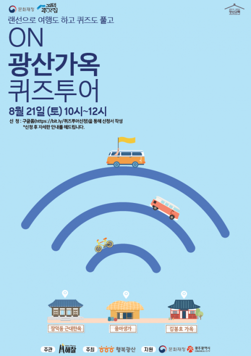 Áö³ÇØ Á¦1ȸ ¡®±¤»ê, ºñ´ë¸é ¹®ÈÀ¯»ê ÄûÁî´ëȸ¡¯¿¡ ÀÌ¾î µÎ ¹øÂ°¸¦ ¸Â´Â ¿ÃÇØ Çà»ç´Â 2021³â ¹®ÈÀçû °íÅÃÁ¾°«Áý Ȱ¿ë»ç¾÷ÀÇ ÀÏȯÀ¸·Î ¸¶·ÃµÆ´Ù. ±¤»ê±¸ ´ëÇ¥ °¡¿Á ¹®ÈÀçÀÎ ¿ë¾Æ»ý°¡, ±èºÀÈ£ °¡¿Á, Àå´öµ¿ ±Ù´ëÇÑ¿ÁÀ» ÁÖÁ¦·Î ÇÑ´Ù.