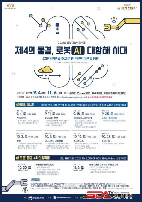 ¾î¸°ÀÌ ´ë»ó ÇÁ·Î±×·¥ ¡®·Îº¿¾Æ, ³îÀÚ!¡¯´Â 9¿ù4ÀϺÎÅÍ 10¿ù23ÀϱîÁö °­¿¬ 7ȸ, ޹æ 1ȸ·Î ÃÑ 8ȸ°¡ ÁøÇàµÇ¸ç, ¼ºÀÎ ÇÁ·Î±×·¥ ¡®»õ·Î¿î ¹°°á, 4Â÷ »ê¾÷Çõ¸í¡¯Àº 10¿ù30ÀϺÎÅÍ 11¿ù6ÀϱîÁö °­¿¬ 1ȸ, ÈļӸðÀÓ 1ȸ·Î ÃÑ 2ȸ°¡ ÁøÇàµÈ´Ù. °­¿¬°ú ÈļӸðÀÓÀº Äڷγª19 »óȲÀ» °í·ÁÇÏ¿© ¿Â¶óÀÎ ºñ´ë¸é ÇÁ·Î±×·¥(ZOOM)À» ÀÌ¿ëÇÑ´Ù.