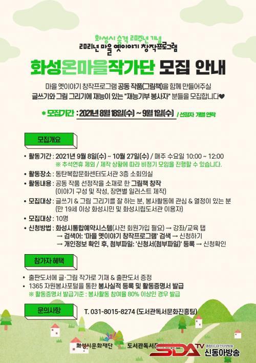 [½Åµ¿¾Æ¹æ¼Û=ÀÌÀçö±âÀÚ] È­¼º½Ã¹®È­Àç´Ü(´ëÇ¥ÀÌ»ç ÀÌÁ¾¿ø)¿¡¼­ 2021³â ¸¶À» ¿¾À̾߱â Ã¢ÀÛÇÁ·Î±×·¥ °øµ¿ Ã¢ÀÛǰ Á¦ÀÛÀ» À§ÇÑ ¡®È­¼º¿Â¸¶À»ÀÛ°¡´Ü¡¯À» 9¿ù 1ÀϱîÁö ¸ðÁýÇÑ´Ù.