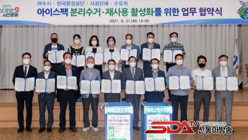 »çÁø= 31ÀÏ ¿©¼ö½Ãû ȸÀǽǿ¡¼­ ¿­¸° ¡®¾ÆÀ̽ºÆÑ ºÐ¸®¼ö°Å‧Àç»ç¿ë Ȱ¼ºÈ­¸¦ À§ÇÑ ¾÷¹«Çù¾à½Ä¡¯¿¡¼­ ±Ç¿ÀºÀ ¿©¼ö½ÃÀå°ú Çѱ¹È¯°æ°ø´Ü ¼ÛÀç½Ä ±¤ÁÖÀü³²Á¦ÁÖȯ°æº»ºÎÀåÀÌ ¼ö°ÅÇÔ¿¡ Àç»ç¿ëÀÌ °¡´ÉÇÑ ¾ÆÀ̽ºÆÑÀ» ³Ö°í ÀÖ´Ù.