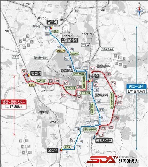 ÃÑ »ç¾÷ºñ 9,773¾ï ¿øÀÌ ÅõÀÔµÇ¸ç ¿À»ê~µ¿Åº~¼ö¿ø ¸ÁÆ÷ 3°³ ½Ã¸¦ Çϳª·Î ¿¬°áÇÏ´Â ³ë¼±°ú º´Á¡¿ª¿¡¼~µ¿Åº 2½Åµµ½Ã¸¦ ¿¬°áÇÏ´Â ÃÑ 2°³ ³ë¼± 36°³ Á¤°ÅÀåÀ¸·Î È®Á¤µÆ´Ù.