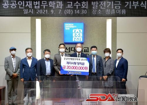 Áö³­ 7ÀÏ ¿ÀÈÄ 2½Ã 30ºÐ Á¶¼±´ëÇб³ º»°ü 2Ãþ ûÃâ¾î·ë½Ç¿¡¼­ ¿­¸° ±âºÎ½ÄÀº Àü¹®¹ýÁ¶Àΰú »çȸ°¢°èÀÇ °øÁ÷ÀÚ ¾ç¼ºÀ» À§ÇØ °ø°øÀÎÀç¹ý¹«Çаú ±³¼öȸ°¡ 2000¸¸¿øÀÇ ÀåÇбÝÀ» Á¶¼º, ±âºÎ½ÄÀ» ÁøÇàÇß´Ù.