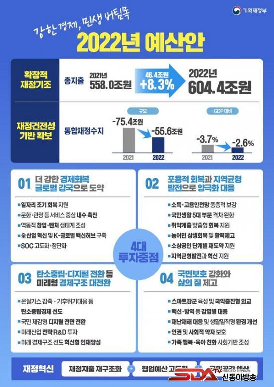 Á¤ºÎ´Â 31ÀÏ ±¹¹«È¸ÀǸ¦ ¿¾î 2022³âµµ ¿¹»ê¾ÈÀ» 604Á¶ 4000¾ï¿øÀ¸·Î È®Á¤Çϰí, ³»´Þ 3ÀÏ ±¹È¸¿¡ Á¦ÃâÇÒ ¿¹Á¤ÀÌ´Ù.