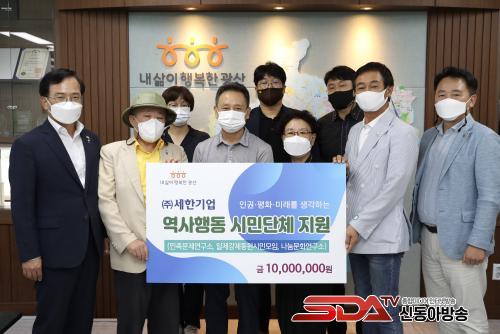 [½Åµ¿¾Æ¹æ¼Û=À̺´±¸±âÀÚ] ¢ß¼¼Çѱâ¾÷ÀÌ 15ÀÏ ±¤»ê±¸Ã»¿¡¼ Àü´Þ½ÄÀ» °®°í ¿ª»ç Á¤ÀÇ¿Í ÀαÇ‧ÆòÈ °¡Ä¡ ½ÇÇöÀ» À§ÇØ ³ë·ÂÇϰí ÀÖ´Â ¹ÎÁ·¹®Á¦¿¬±¸¼Ò ±¤ÁÖÀü³²ÁöºÎ, ÀÏÁ¦°Á¦µ¿¿ø ½Ã¹Î¸ðÀÓ, ³ª´®¹®È¿¬±¸¼Ò µî ½Ã¹Î´Üü 3°÷¿¡ ÃÑ 1000¸¸ ¿øÀ» ÈÄ¿øÇß´Ù.