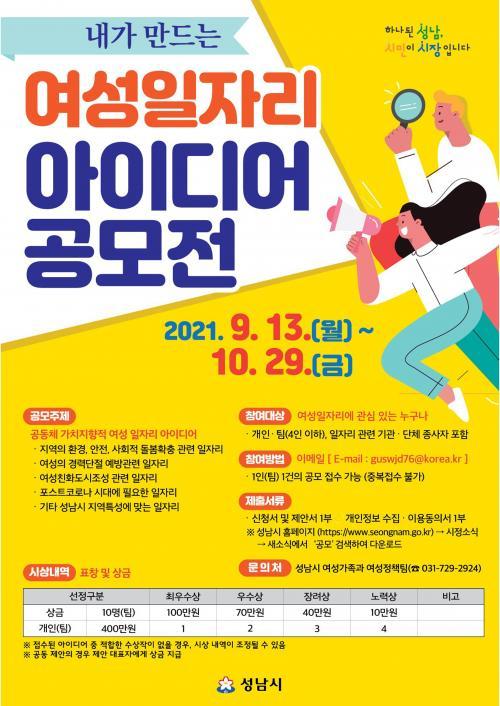 Áö¿ªÀÇ È¯°æ, ¾ÈÀü, »çȸÀû µ¹º½ È®Ãæ °ü·Ã ÀÏÀÚ¸®, ¿©¼ºÀÇ °æ·Â´ÜÀý ¿¹¹æ °ü·Ã ÀÏÀÚ¸®, ¿©¼ºÄ£Èµµ½Ã Á¶¼º °ü·Ã ÀÏÀÚ¸®, Æ÷½ºÆ® Äڷγª ½Ã´ë¿¡ ÇÊ¿äÇÑ ÀÏÀÚ¸®, ¼º³²½Ã Áö¿ª Ư¼º¿¡ ¸Â´Â ÀÏÀÚ¸® µî¿¡ °üÇÑ ¾ÆÀ̵ð¾î¸¦ Á¦¾È¹Þ´Â´Ù.