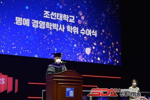 28ÀÏ Á¶¼±´ëÇб³ ÇØ¿À¸§°ü¿¡¼ ¿¸° ¸í¿¹¹Ú»ç ÇÐÀ§ ¼ö¿©½ÄÀº Á¤¿øÁÖ ÁßÈï±×·ì ºÎȸÀå, ¹Î¿µµ· ÃÑÀåÀ» ºñ·ÔÇØ ´ëÇÐ ±¸¼º¿ø, ³»¿Üºó µîÀÌ Âü¼®ÇÑ °¡¿îµ¥ ÁøÇàµÆ´Ù.