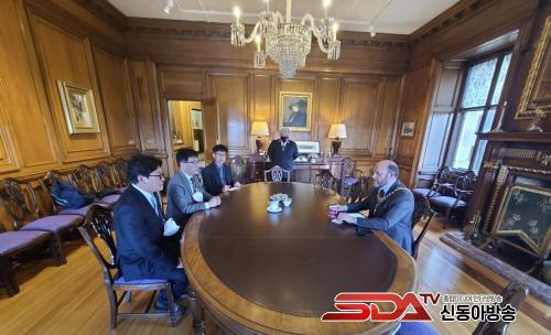 »çÁø=¿©¼ö½Ã ´ëÇ¥´ÜÀÌ Áö³­ 1ÀÏ ¿ÀÈÄ(ÇöÁö½Ã°£) ¿µ±¹ ¿¡µç¹ö·¯ ½Ãû¿¡ ¹æ¹®ÇØ ÇÁ·©Å© ·Î½º ½ÃÀå°ú ¸¸³ª 2050 ź¼ÒÁ߸³ÀÇ ÀÇÁö¸¦ ´ãÀº ¿©¼ö½ÃÀå ¼­Çѹ®À» Àü´ÞÇϸ鼭, ź¼Ò¹èÃâ Àú°¨ Á¤Ã¥ µî ¾ç µµ½ÃÀÇ ±âÈĺ¯È­ ´ëÀÀ °ü·Ã Á¤Ã¥¿¡ ´ëÇØ ³íÀÇÇß´Ù.