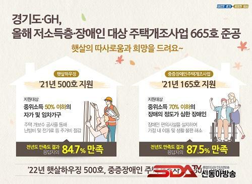 [½Åµ¿¾Æ¹æ¼Û´º½º=¹èÁöÀ± ±âÀÚ] °æ±âµµ¿Í °æ±âÁÖÅõµ½Ã°ø»ç(GH)´Â ¿ÃÇØ Àú¼ÒµæÃþ°ú Àå¾ÖÀÎ 665°¡±¸¸¦ ´ë»óÀ¸·Î Áý¼ö¸®¸¦ Áö¿øÇÏ´Â ÁÖ°Åȯ°æ °³¼± »ç¾÷À» ÁøÇàÇß´Ù°í ¹àÇû½À´Ï´Ù.